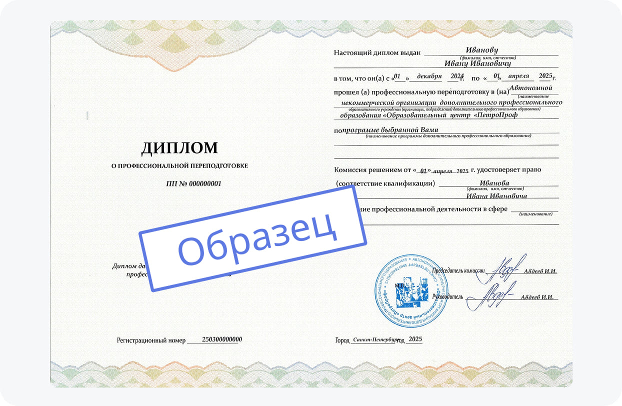 Важным условием для получения диплома о проф. переподготовке является наличие у слушателя профессионального или высшего образования. Такой документ открывает перед представителем профессии новые карьерные перспективы и возможности роста. Он важен при трудоустройстве в интересующую организацию, предприятия, компанию или фирму. Все данные вносятся в Единый реестр ФИС ФРДО.
